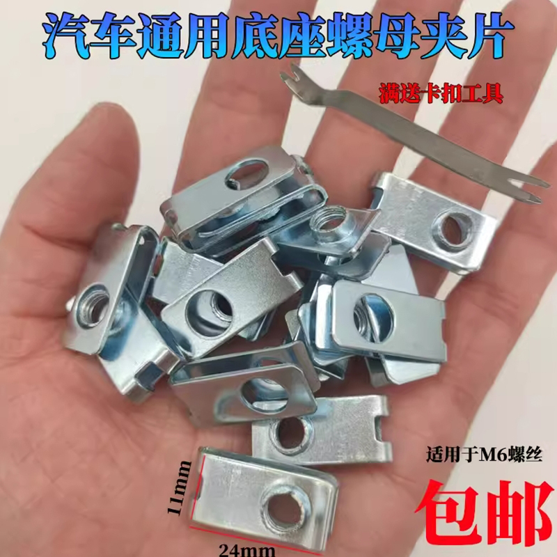 通用汽车前牌照 后保险杠固定螺丝底座 卡扣卡子夹子配件 适用M6螺栓